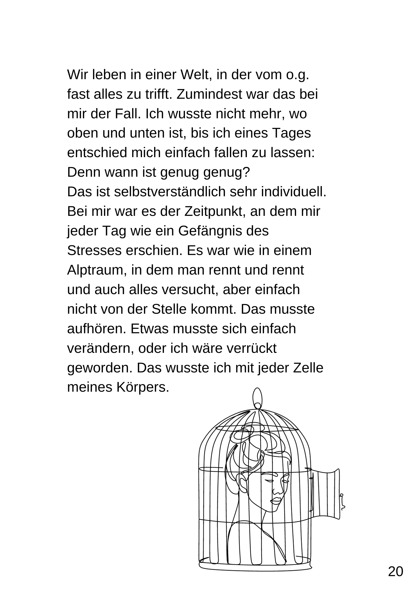 Am eigenen Beispiel geht die Autorin darauf ein, daß irgendwann der Tag gekommen ist, an dem der Stress zu laut wird und was passiert, wenn man endlich hin hört.
